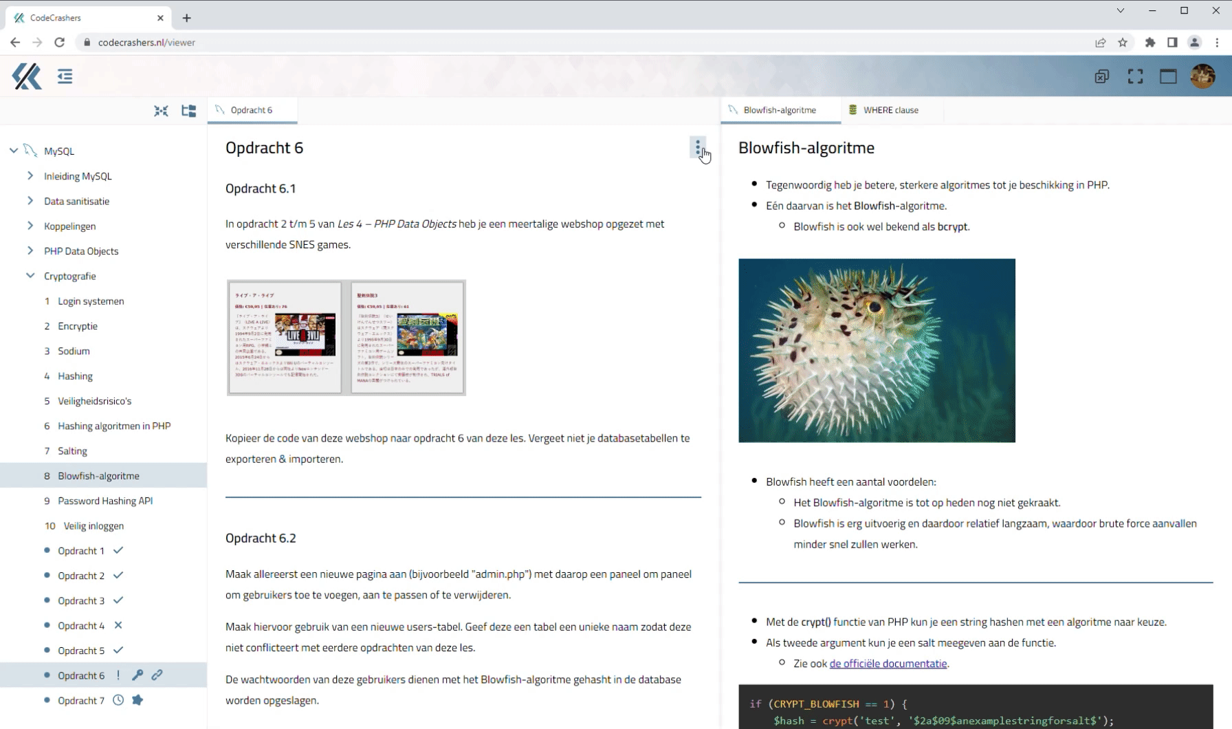 Studenten kunnen zelfs lesstof uit andere, eerder gevolgde, cursussen erbij pakken. Het is immers erg vervelend als je in de PHP cursus de opdracht krijgt om een HTML tabel te genereren en je vergeten bent hoe dat moet 😉.